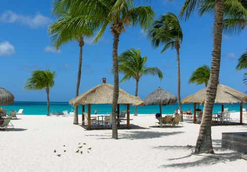Sitting just 15 miles off the Venezuala coast in the tropical southern Caribbean lies the beautiful Dutch island of Aruba. With stunning white sandy beaches fringed by coconut palms, Aruba is the perfect holiday destination if you like sunshine and tropical waters. Unlike many Caribbean islands, Aruba has a dry climate throughout most of the year giving rise to an arid, cactus-strewn wild west landscape in the centre.