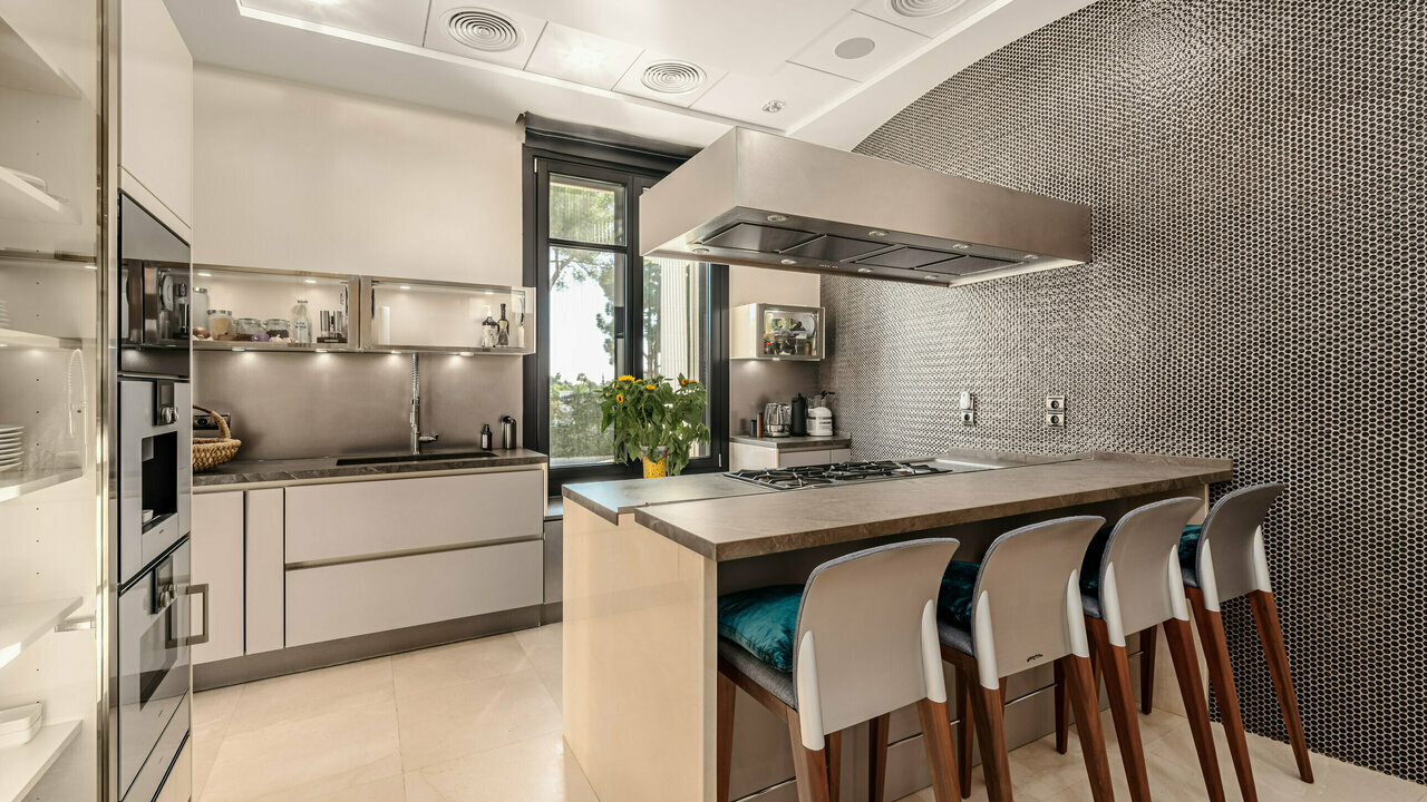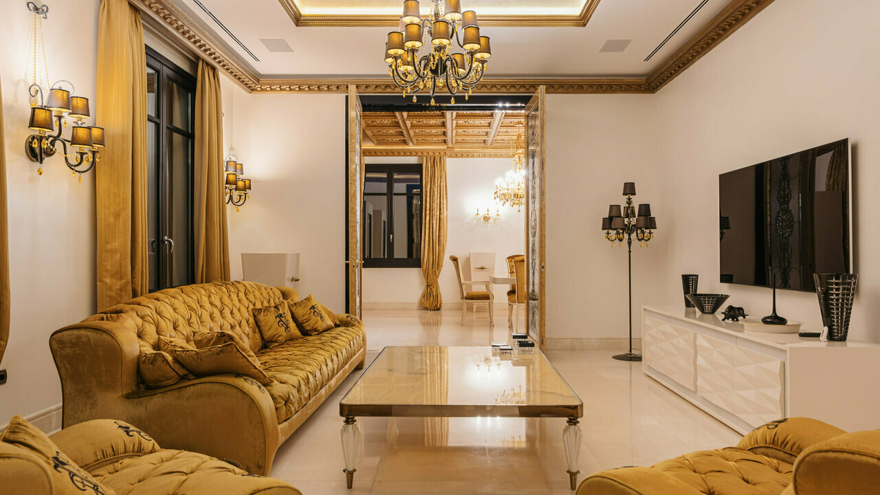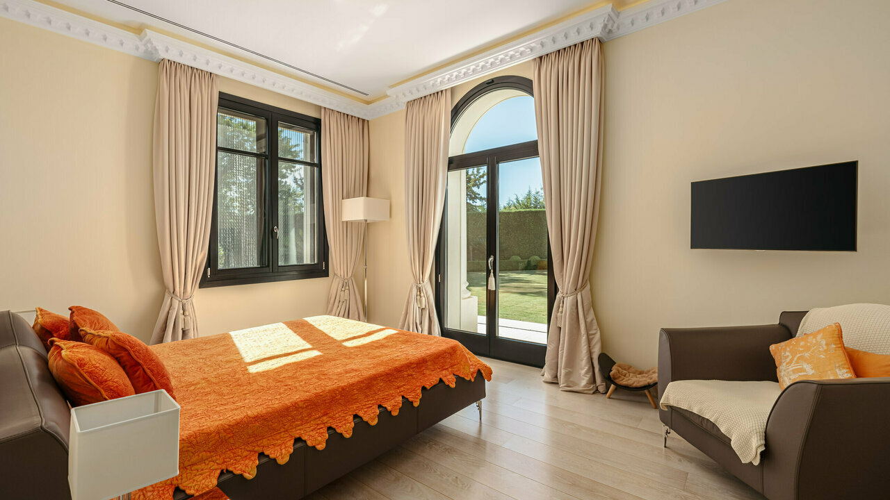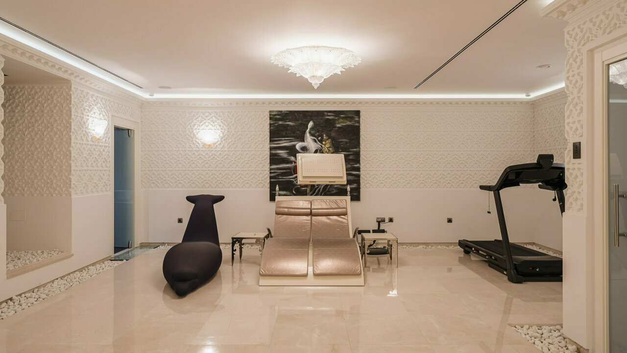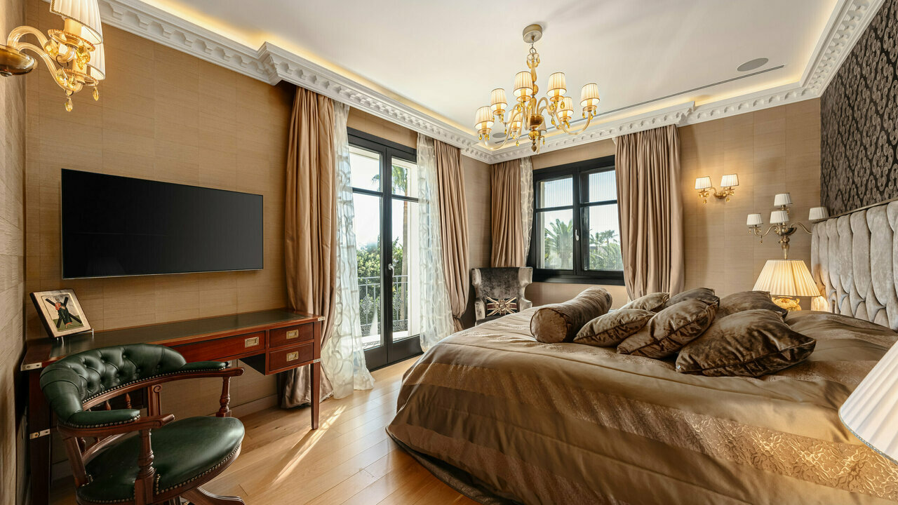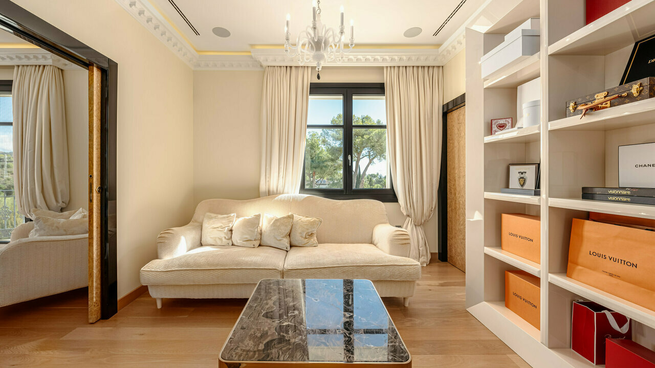 The impeccable high-end interiors and tasteful décor give this very special home the regal look. It can be used as the backdrop forofficial royal family portraits! The rooms are dripping in grandeur with sparkling chandeliers, one-of-a-kind stained glass art objects,historic-style notable gilded furnishings, velvet and silken textiles. Every detail has been crafted with immaculate attention, using only thefinest materials and products from the best manufacturers; the installations and energy-efficient systems meet the highest standards. Being a true luxury property, it comes with a home automation system, air conditioning, partial underfloor heating, oval freestanding bath,Jacuzzi, double glazing, stunning lighting design, surveillance cameras and everything you need for the most exclusive and secure life.It is located close to the best beaches, the world- famous Nikki Beach Club, golf coures, international schools (Spanish, German, Englishcollege), just 12 min. drive to the center of Marbella and 30 min. to Malaga International.