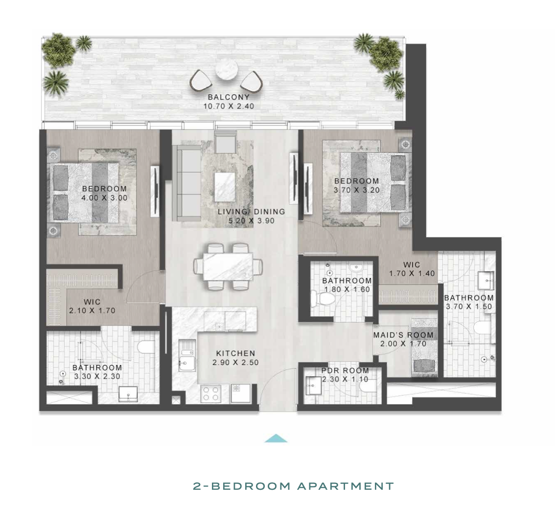 | Apartment | 2 | 1244 to 1660 | 2 | 1 | AED 2.80m |